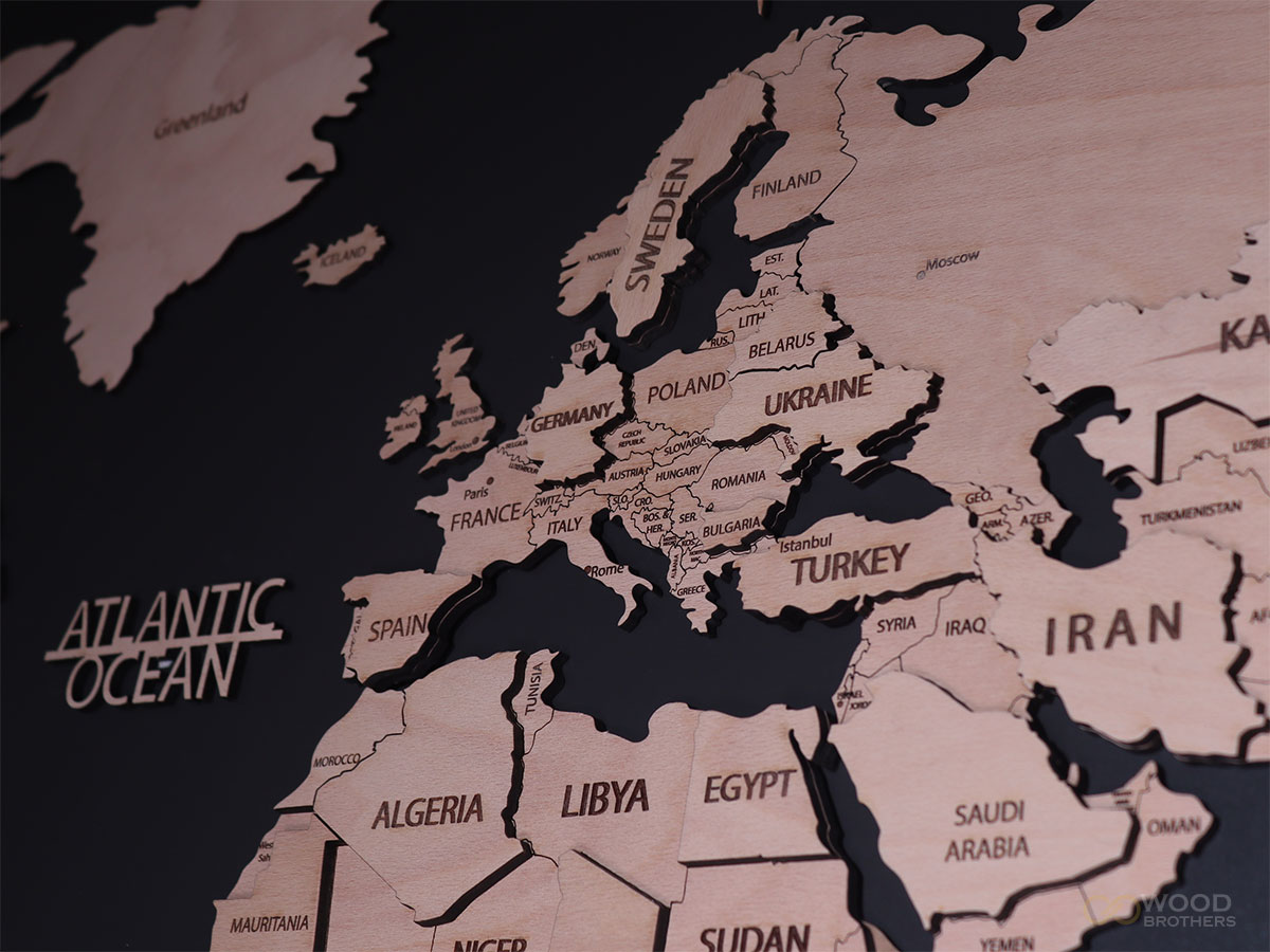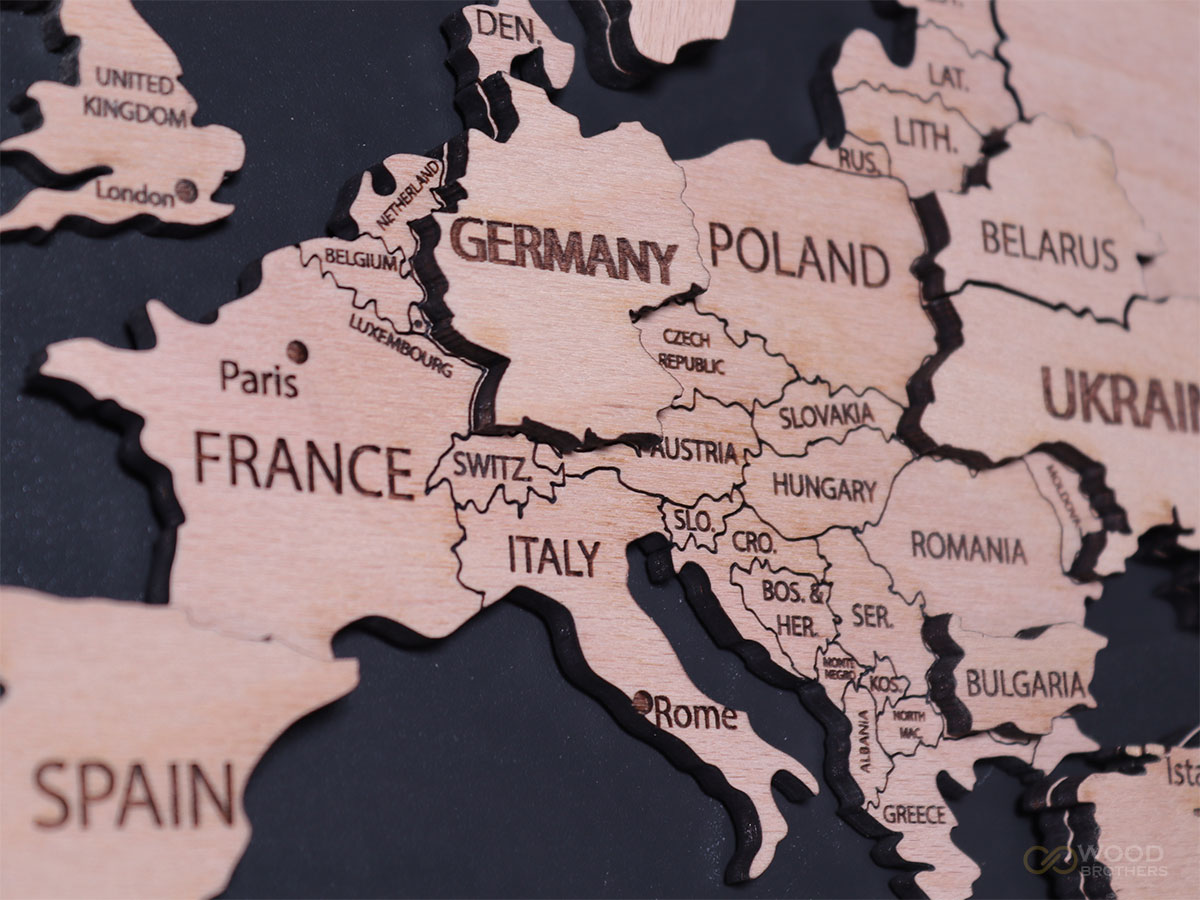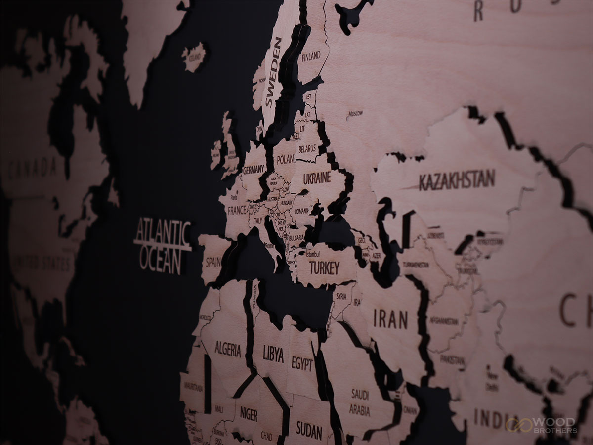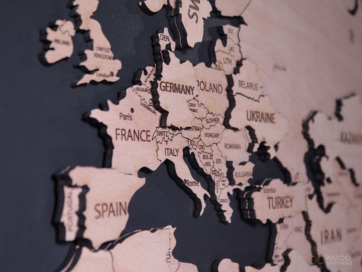 The maps are made of wood, with two layers that give a 3D effect. The ordered goods are packed and sent in a cardboard box, which, in addition to the map, also contains models and instructions for simple assembly.